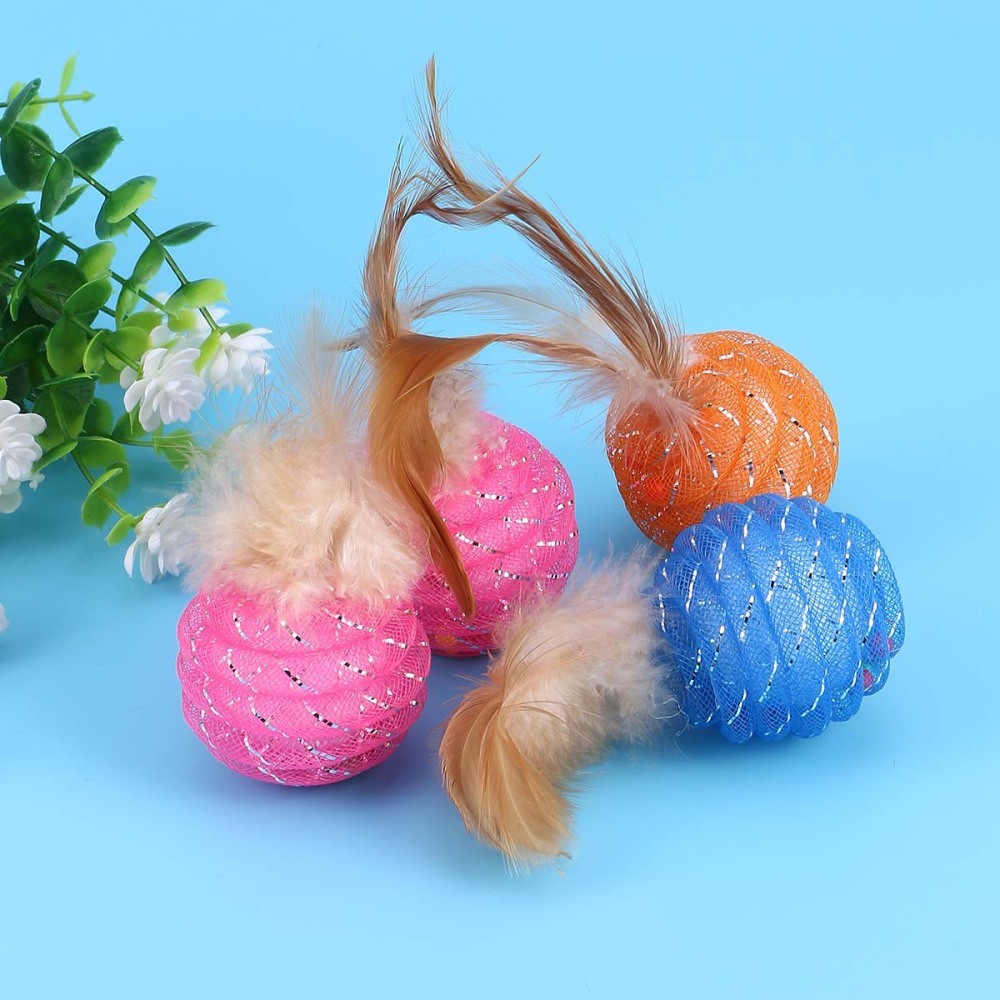 4pcs Pet Cat Toy Ball With Line Tube Ball Pet Toy (Random Color)